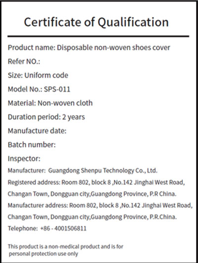 3. DisponibelNonvävd skoomslagsparameter specifikationer