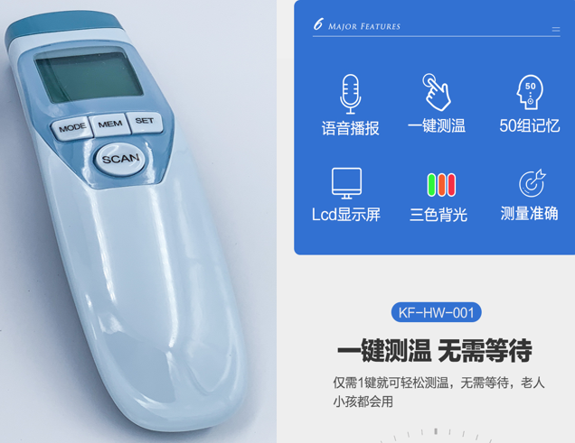 Som en av de grundläggande vitala tecknen kan kroppstemperatur återspegla kroppens ämnesomsättning och hälsotillstånd. Med hänvisning till många typer på marknaden är det bekvämaste valet den berörda pannetermometern. För att undvika temperaturmätningsfel är det är nödvändigt för att välja en panntermometer av hög kvalitet. Till exempel kan KIEYYUEL: s KF-HW-001, infrarött höghastighetstest, se förändringar i kroppstemperatur på 0,1 ° C.